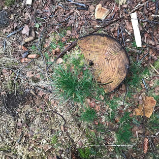 20th March 2019: the second full moon walk. I walked in the daylight this time, so again no moon-sighting for me! Instead I looked for moon-shapes as I walked down the track and into the small wood. There is pine, birch and holly. It's quite dark in there but the top point of it is Scots pine and birch, so less gloomy.
